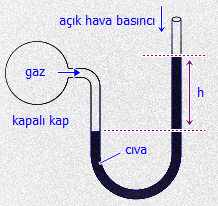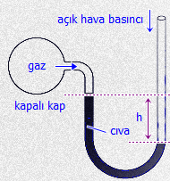 Kapalı bir kaptaki gaz basıncını ölçmeye yarayan düzeneğe manometre denir.