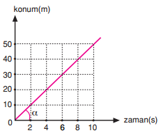 Konum-zaman grafiğinin eğimi hızı verir. Aşağıdaki şekildeki cismin hızı 5 m/s'dir.