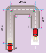 Aşağıdaki şekildeki otomobil 10 saniyede K'dan L'ye gitmişse, 60+40+30=130 metre yol almıştır ve sürati 130/10 = 13 m/s'dir. Yer değiştirmesi 50 metre ve hızı da 50/10 = 5 m/s'dir.